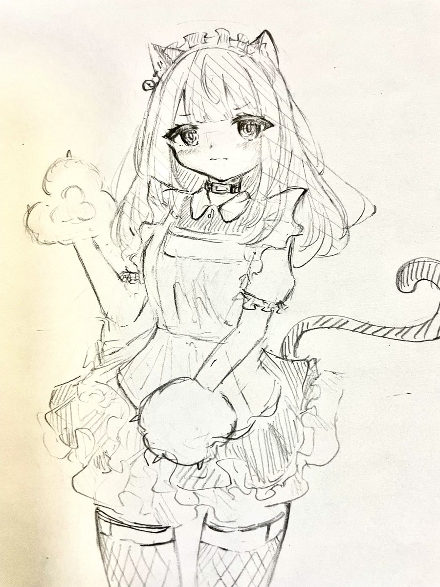skebにて納品させて頂きました! #skeb #絵描きさんと繋がりたい #イラスト好きさんと繋がりたい #イラスト #Illust #art #絵柄が好みって人にフォローされたい #猫耳メイド