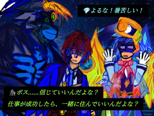 #ゆうさくの旅路2022 #イラスト 2022/08/18・6:57〜 💫行きますよ?二人とも… バイオ・アストロミー… 接待を開始します!\(^o^)/ ⬇ 🦍🐺おう!\(^o^)/ #猿和田ゴロウ… #森ノ宮冥古… 対応▶🔥#赤坂秋喜… twitter.com/SwXPrZtHrY5w…