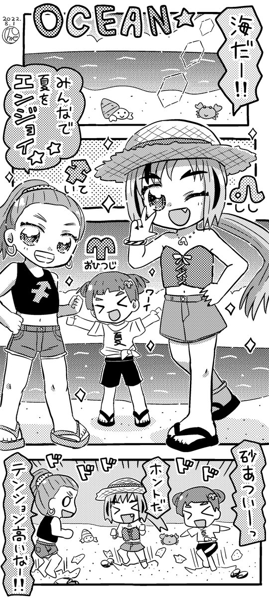 ゆるい星座擬人化4コマを描いてます!今月描いた、海だよ!編をまとめます。その1。しし座さん主役♌ですがまずは12人全員登場⭐️ #ゆる星座女子 #4コマ漫画 #漫画が読めるハッシュタグ #絵描きさんと繋がりたい #創作クラスタさんと繋がりたい #星座擬人化 #獅子座