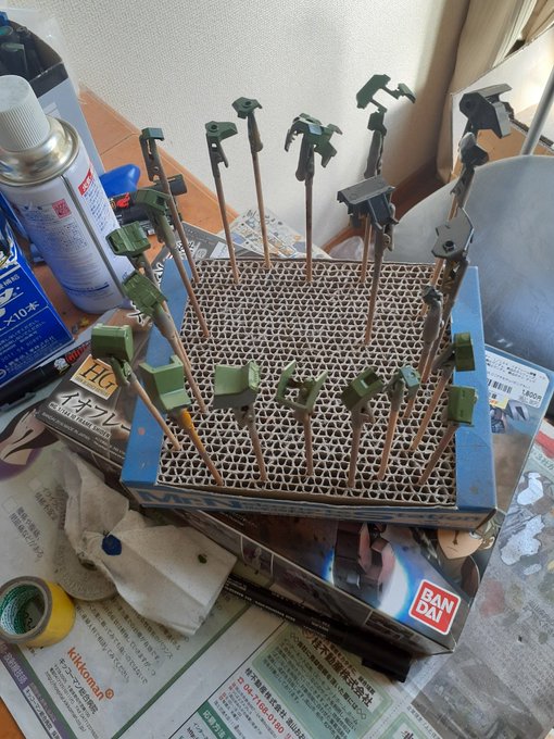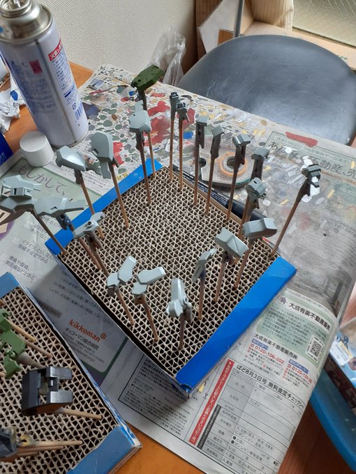 #獅電改異端号 #オラザク #ガンプラの画像貼るとRTされると聞いて #ガンプラ好きと繋がりたい その7 今日はガンダムマーカーエアブラシでシルバーを吹いてその上に、ジオングレー ダークグリーン ダークグレー塗装しました‼️