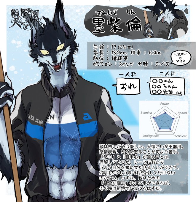 【犬ぞり部/琥珀寮/荒須賀 慎】 遅くなりましたが、犬ぞり部に参加させて頂きます。 アラスカンマラミュート 1年 荒須賀 慎(アラスガ シン) 身長213cm/体重104kg ストイックなスポーツマンだが、ちょっと真面目すぎるかもしれない……? #獣山学園犬ぞり部 #獣山学園犬ぞり部入部届 #琥珀寮
