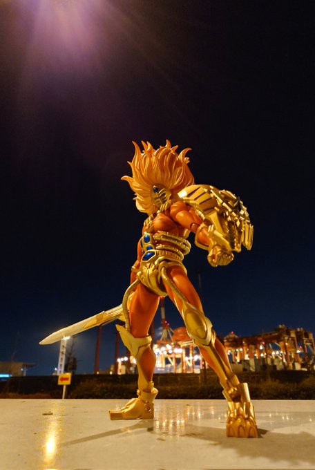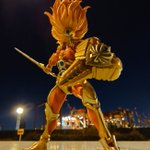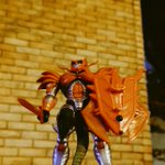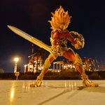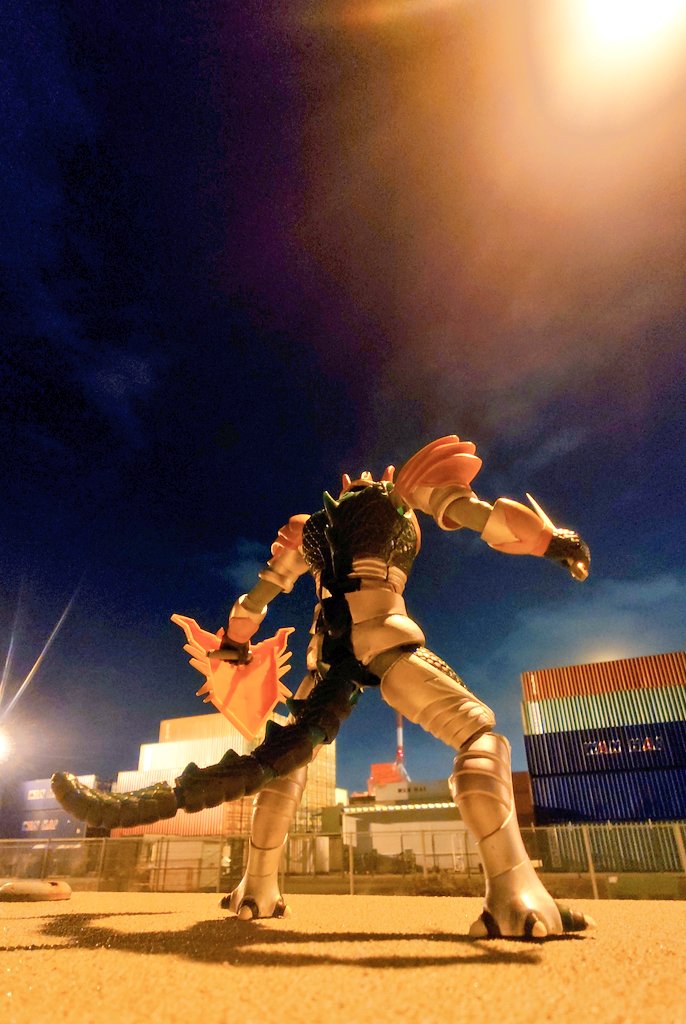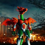 #夜のフィギュア撮影会 #獣神ライガー 「改造」 魔竜王ドルガ!昔のソフビを改造。あの肘関節が蛇腹のやつです。胴体を延長してるので、その辺の情報量増やしてそれっぽいバランスにしてるのがポイントです。何かいい感じの怪獣ソフビが手に入ったら爪先と尻尾をもっと大きくしたいと思ってます。
