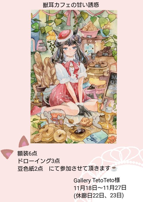 gallery TetoTeto様(@galleryTetoTeto )で開催される 獣耳カフェの甘い誘惑 に参加します✨ 開催期間:11月18日~11月27日 (休廊日:11/22・23) 場所 : galleryTetoTeto様 どうぞよろしくお願いします #獣耳カフェの甘い誘惑
