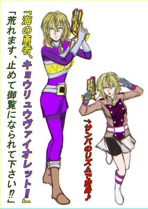 前回のゼンカイジャーや今回のプリキュアでサンバが活躍していたので、多分誰も描かないであろうネタを描いてみました🦕😁🎶 #ヴァイオレット・エヴァーガーデン #獣電戦隊キョウリュウジャー #キョウリュウバイオレット #弥生・ウルシェード