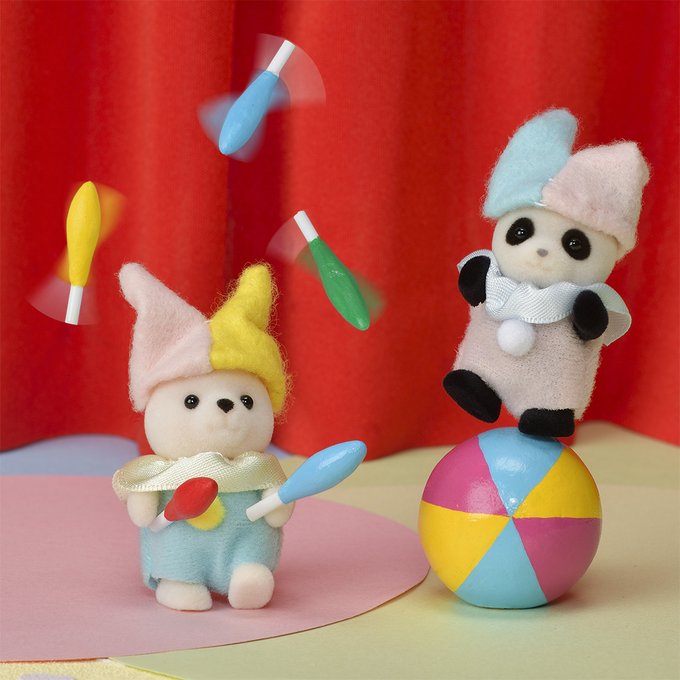 パンダのアンジェラとシロクマのベスは、ゆうえんちで披露するショーの練習中🎪 こんな技もできるんですよ! すごいですね✨ #シルバニアファミリー #シルバニア #ジャグリング #玉乗り #シルバニア赤ちゃん