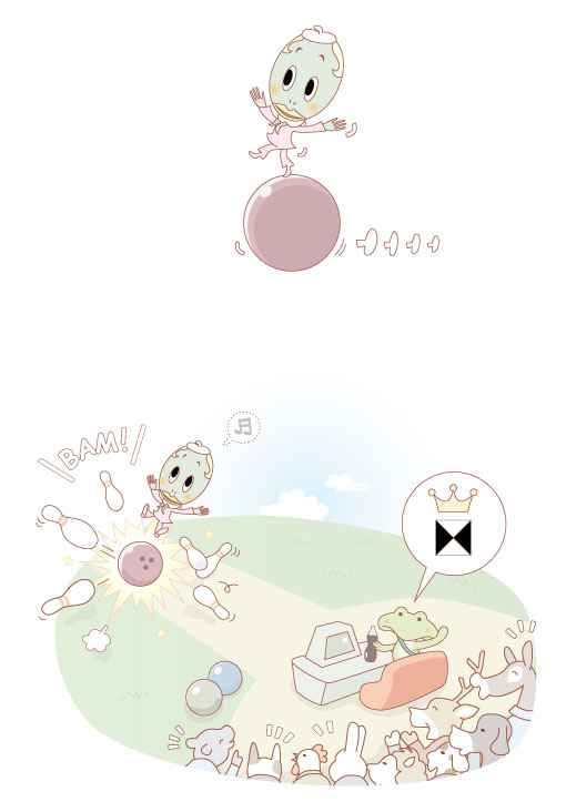 🎪🃏😸😺🐶🦩《道化師と陽気な仲間たち》とフラミンゴによる楽しいボールライディングショー🦩 ★テーマ ∶❤️ハート❤️ #道化師と陽気な仲間たち #アトリエの系譜S #マンガスタイルイラスト #アナログ #picturebookillustration #挿絵 #道化師 #玉乗り #アクロバット