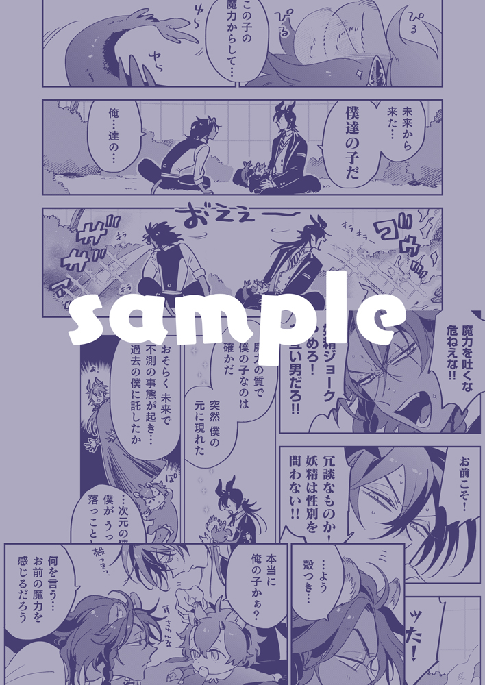マレレオ新刊サンプル 「こんにちは 殻つきちゃん」 B5/8p/100円 未来からやってきた自分たちの子に出会う話です ecs.toranoana.jp/joshi/ec/item/… #王子たるものDR2021