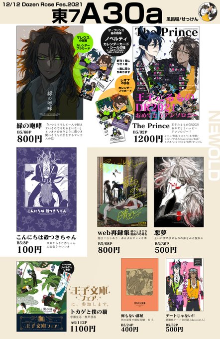 12/12 #王子たるものDR2021 東7 A30b まばたき03 おしながき 全部マレレオ 新刊通販: ec.toranoana.jp/joshi_r/ec/ite… 通販一覧: ec.toranoana.jp/joshi_r/ec/app… 各本のサンプル等はしぶからどうぞ pixiv: pixiv.net/artworks/94682…