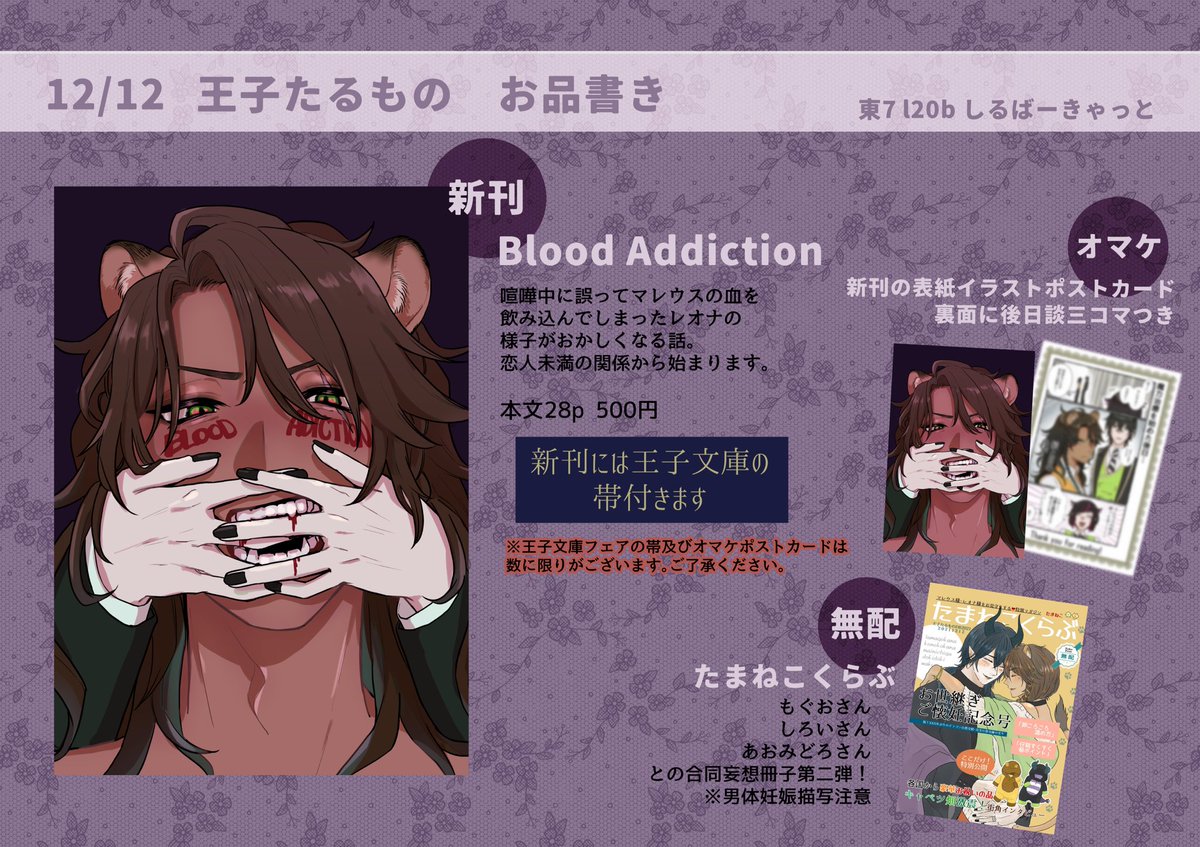 #王子文庫フェア #王子たるものDR2021 12/12 王子たるもののお品書きです〜!✨ ギリギリ滑り込んでオマケのポスカがご用意できました!🎉 新刊では王子文庫フェアにも参加させて頂いてます! よろしくお願いします〜🥳