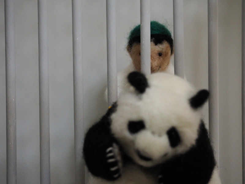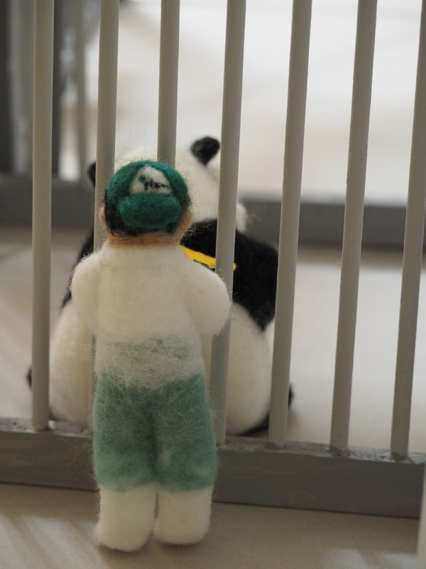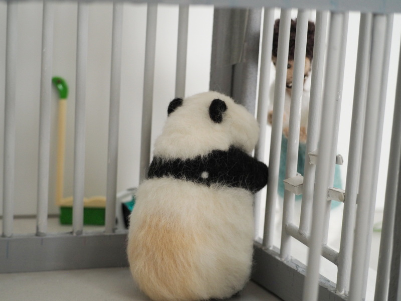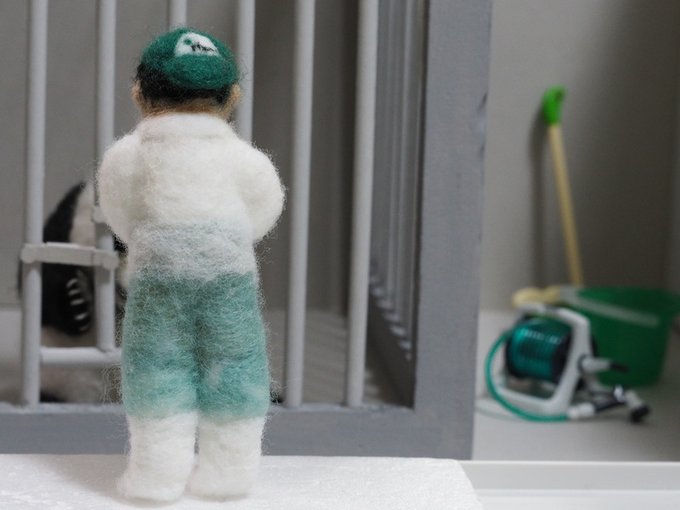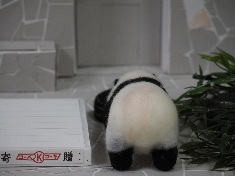 【再現パロディ】 おはようございます♪ 今朝は皆さんに少しだけ飼育員の気分を味わってもらおうと、朝の巡回の様子を撮影してみましたよ😄 U「え?・・・あれれ?ちびタン?」 #王子動物園 #ジャイアントパンダ #タンタン #羊毛タンタン№38 #羊毛フェルト twitter.com/kobeojizoo/s…