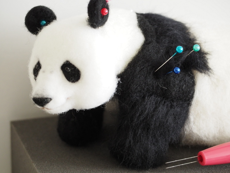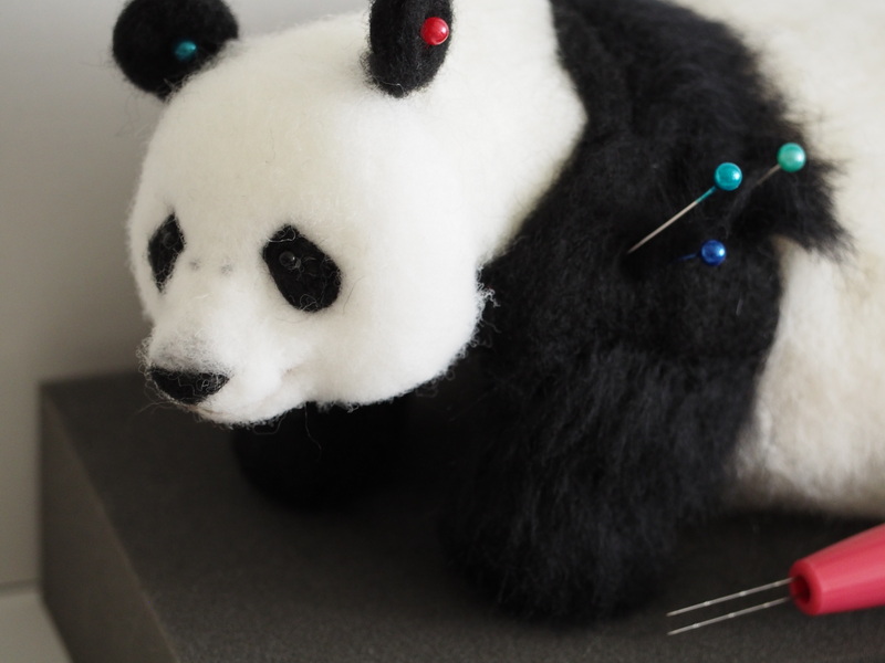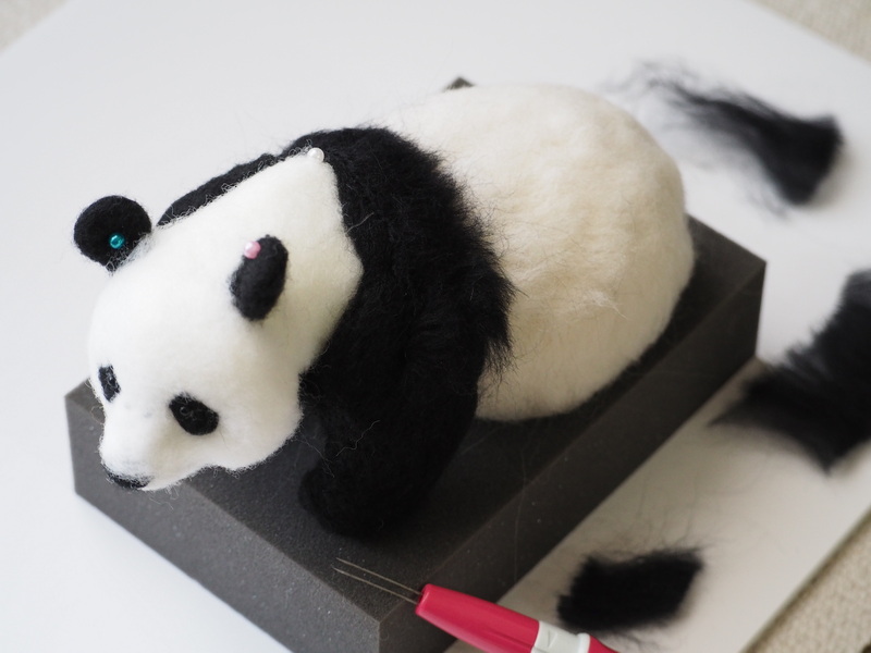 【メイキング】寛ぎタン 腰回りから、背中のボレロラインの下まで白を植毛。 次に黒のメリノ羊毛を植毛していく。 チビ「だんだんとフサフサの腕になるよ・・・♪ ちびタン、がんばるっ! つづく #王子動物園 #羊毛タンタン #ジャイアントパンダ #タンタン #羊毛フェルト twitter.com/YoshikoMoon4…