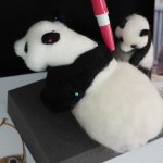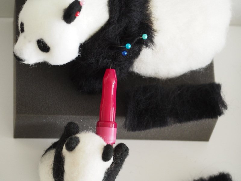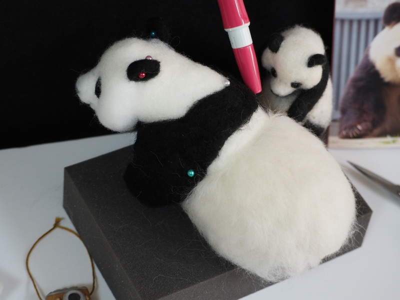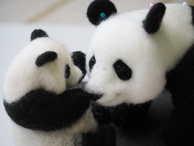 【メイキング】寛ぎタン チビ「今から前脚(腕)の植毛をするね。」 タン「ありがと💞ちびタン、よろしくね。」 この後、後頭部~顔面の植毛までしばらく作業続きます。 時間と・・想いを掛けたい作品。体長約18cm。 #王子動物園 #羊毛タンタン #ジャイアントパンダ #タンタン #羊毛フェルト twitter.com/YoshikoMoon4…