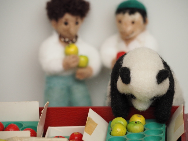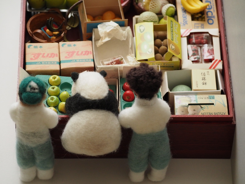 【再現パロディ】 飼育員さんとちびタンはリンゴの仕入れで青果市場へ。 #タンタン さん・・・それはあご置きではなくて、🍏りんごですよ😂 #王子動物園 #ジャイアントパンダ #羊毛タンタン№38+21 #羊毛フェルト twitter.com/kobeojizoo/s…