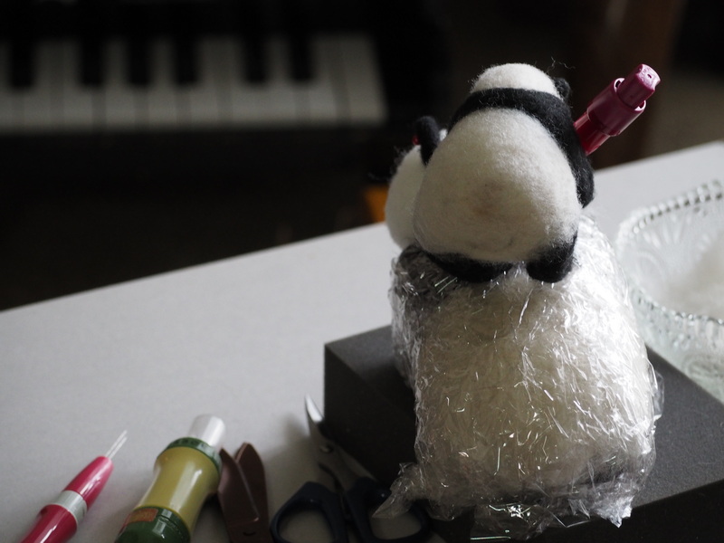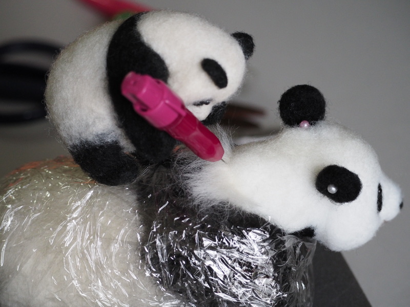 【メイキング】寛ぎタン ボレロラインと前脚の植毛を終えました。 このあと首~後頭部~顔面へと進みますので、黒い部分に白い毛が混じらないように、サランラップを巻く。 まるで「痩身施術」😂 ちびタン、がんばるっ! #王子動物園 #羊毛タンタン #ジャイアントパンダ #タンタン #羊毛フェルト twitter.com/YoshikoMoon4…