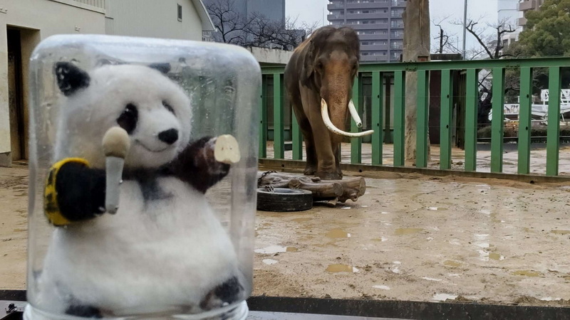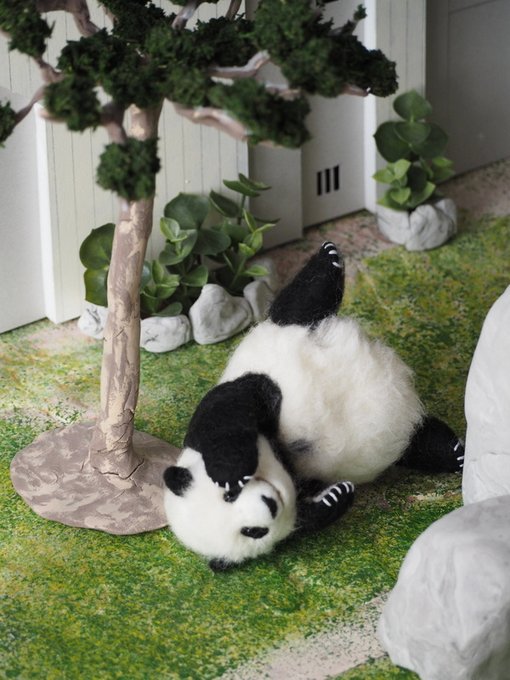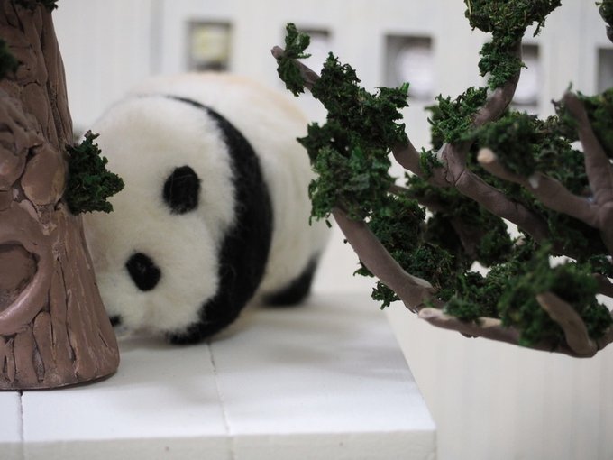 【再現パロディ】 もぅいいかい? まぁだだよ♪ また明日も遊んでね❤ #王子動物園 #ジャイアントパンダ #タンタン #羊毛タンタン№107 #羊毛フェルト twitter.com/kobeojizoo/sta…