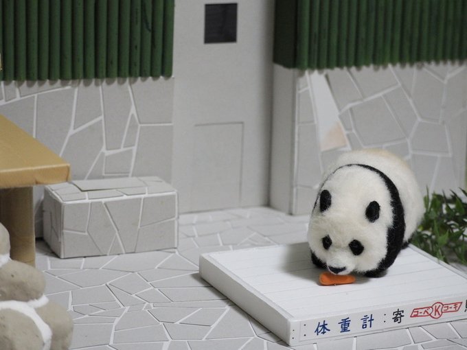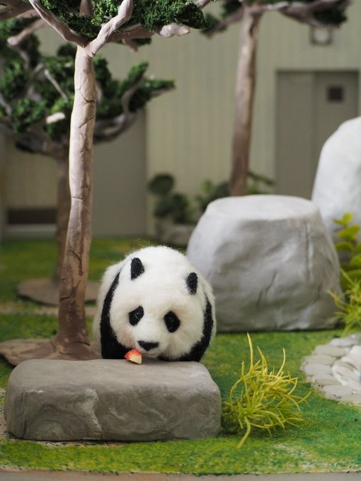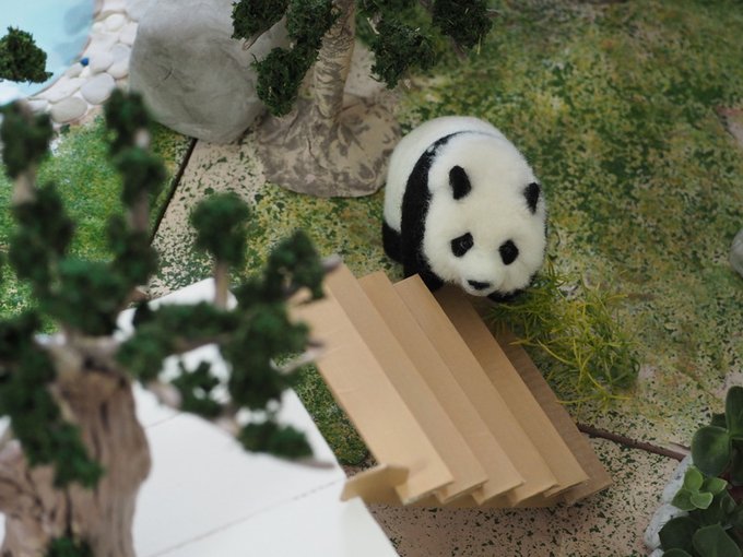 【再現パロディ】 バレンタインの日。新階段でのタンタンの動きに注目。下段の横側から入り、横側から出る。 タン「フワフワに成長した緑の草さんを踏んだらかわいそうだから…🥹」 #王子動物園 #タンタン #ジャイアントパンダ #羊毛タンタン№107 #羊毛フェルト #パンダ twitter.com/kobeojizoo/s…