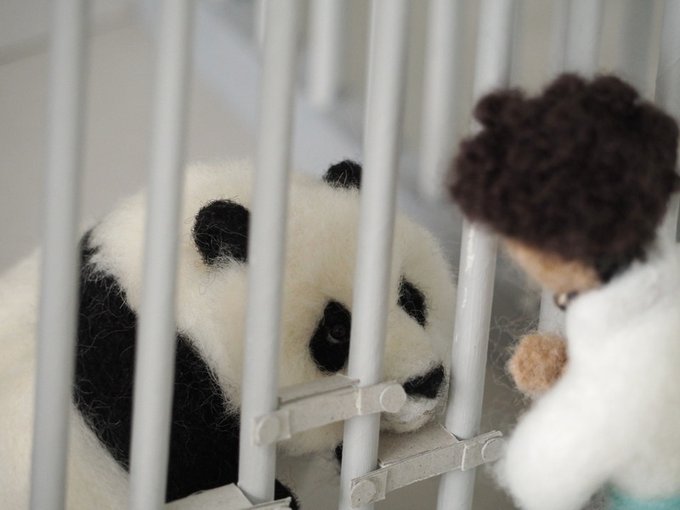 【再現パロディ】 U「😳💦・ぼ・僕は・な・・なにもしてませんよ💦」 #王子動物園 #羊毛タンタン№86 #羊毛フェルト #ジャイアントパンダ #needlefelting #giantpanda twitter.com/kobeojizoo/s…