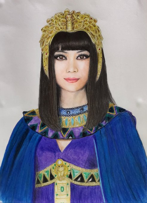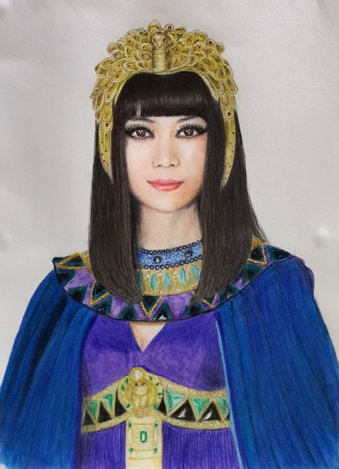 「ミュージカル 王家の紋章」より新妻聖子さん演じる、下エジプトの女王アイシス様を色鉛筆で描きました✏️ 圧倒的な歌の上手さと深すぎる作品への愛💕に感動✨ 再々々演も是非ご出演お願いします✨ #王家の紋章2021 #王家の紋章 #新妻聖子 様 #色鉛筆画 #ファンアート #絵描きさんと繋がりたい