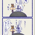 #4コマ #イラスト #イラスト好きと繋がりたい #イラスト好きさんとつながりたい #絵描きさんと繋がりたい #絵描き #4コマ漫画 #漫画が読めるハッシュタグ #剣 #王様 【双子ウサギ男子とリス女子】 伝説の剣に遭遇したリス女子と双子ウサギ弟。