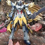 #玩基地ーガンベースー #ガンプラ #ガンプラ好きとつながりたい つや消しを吹いて各所を弄り直したホワイトハンターです。 弓と大型剣を背負って今日も戦います。 背景が素敵だといつもよりカッコよく見えます。