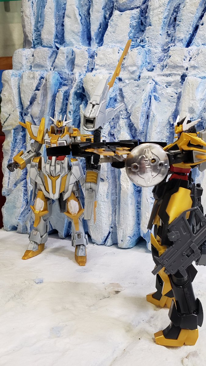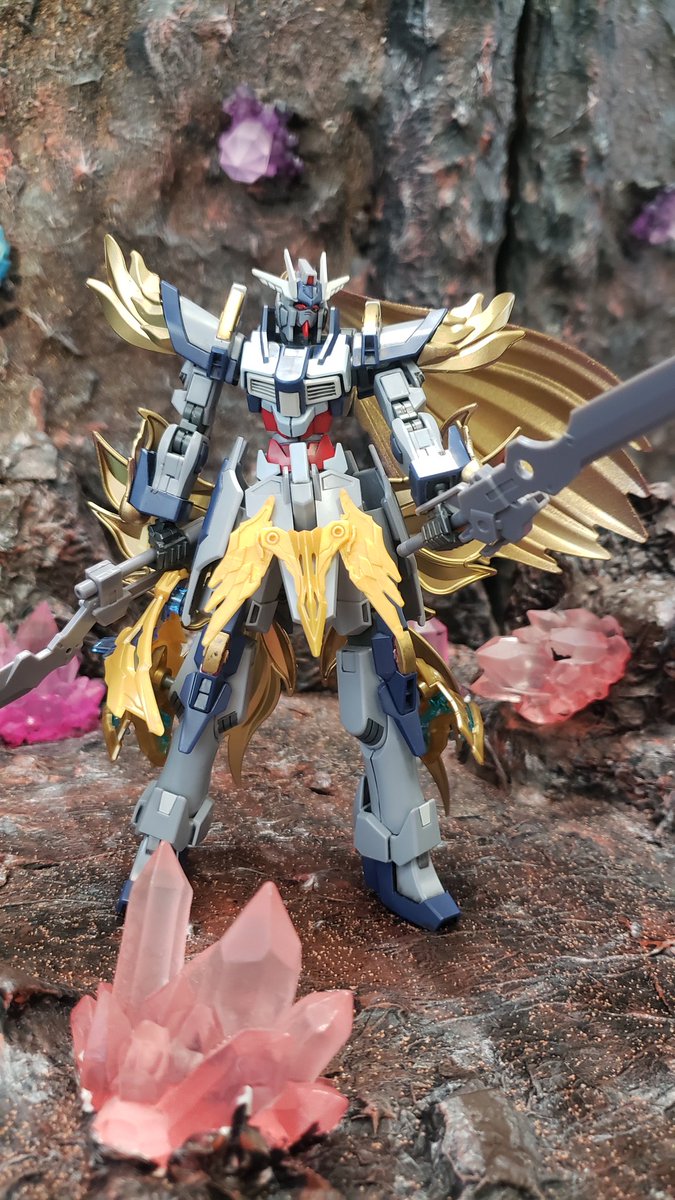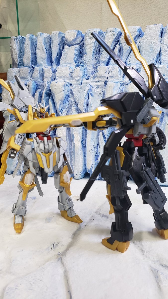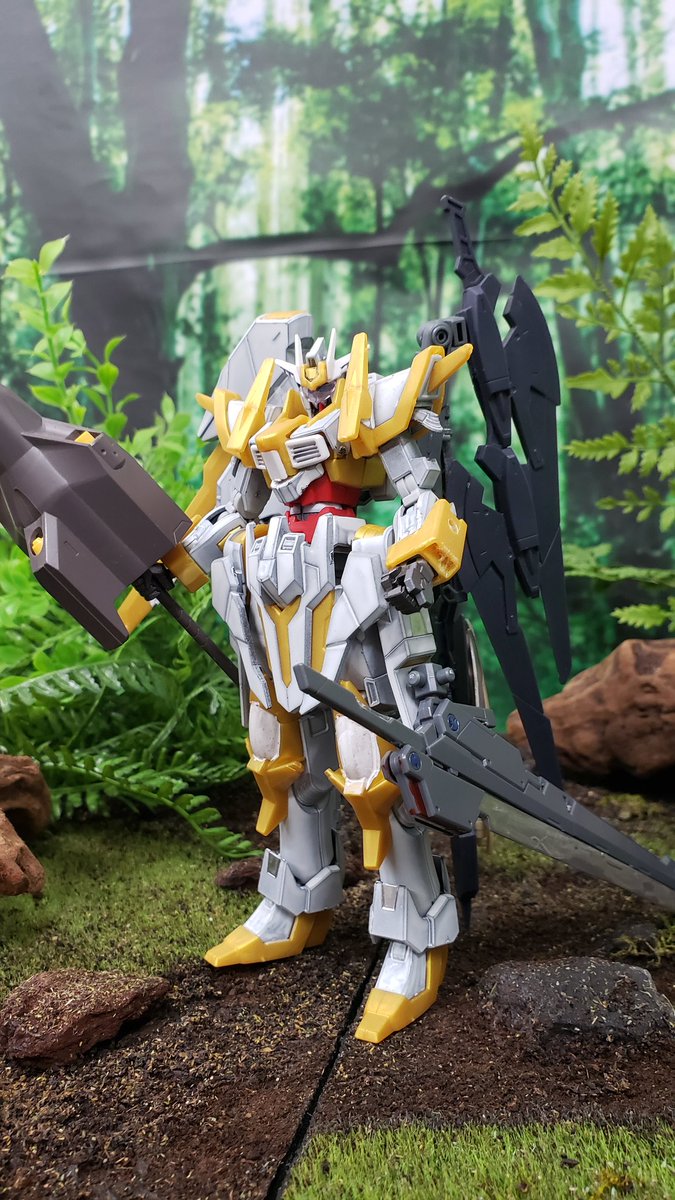 #玩基地ーガンベースー #ガンプラ #ガンプラ好きとつながりたい つや消しを吹いて各所を弄り直したホワイトハンターです。 弓と大型剣を背負って今日も戦います。 背景が素敵だといつもよりカッコよく見えます。