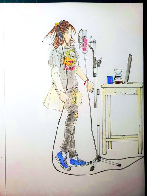10/2投稿のをフルカラー⁉️にした✨ #珈琲と音楽 #オリキャラ #beat #ヘッドホン女子 #コンデンサーマイク #Tシャツ #ボーカル ②が原画 右眼 結構直した(これでも苦労した💦) #みんなで楽しむTwitter展覧会 #絵描きの輪 #イラスト好きな人と繋がりたい #アトリエの系譜 #絵師さんとつながりたい