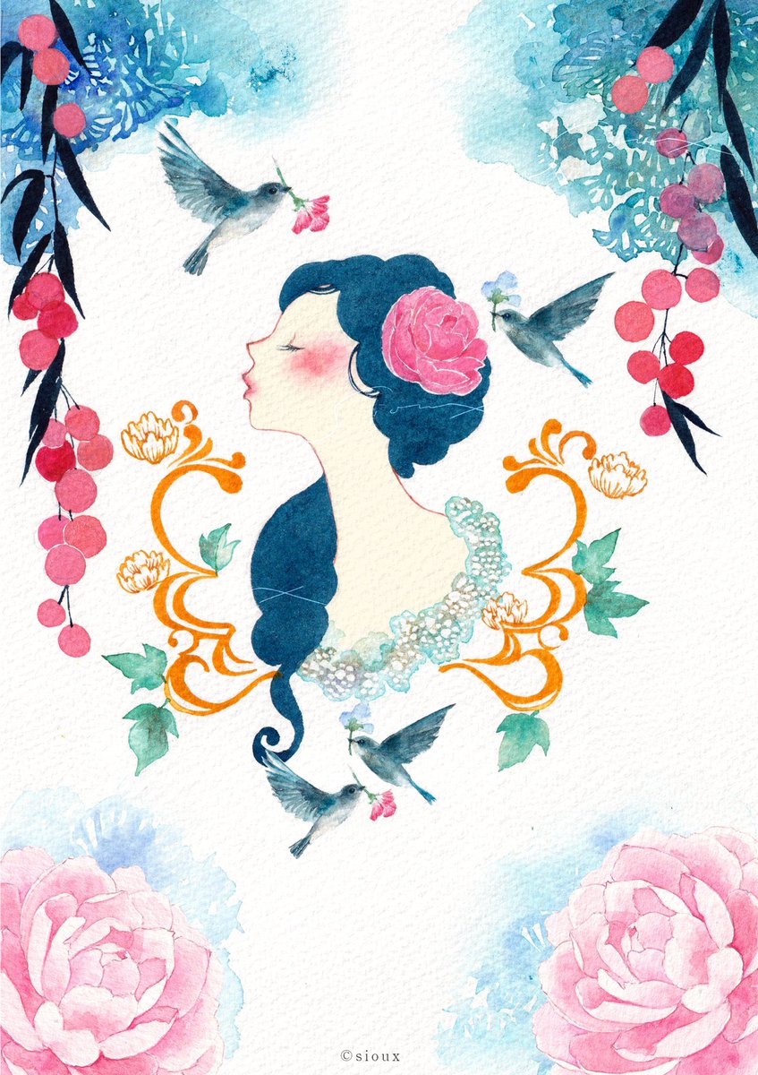 サプリメントパンフレットのお仕事。 サプリの世界観をイラストの世界で構築する、大変でとても楽しい楽しいお仕事でした! こちらは商品自体のイラスト、デザインにも携わらせていただきました sioux.jp/contents/?p=56… #イラストレーション #現代美人画 #透明水彩 #美容