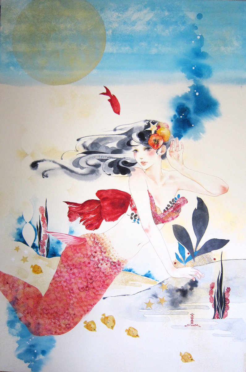 [ひらめく血潮 2/Flashing and flowing 2 ] Thumbhole(SM) Materials:watercolor,colorpencil 2015 SOLD 2枚目頭の中です sioux.jp #sioux #bijinga #イラストレーション #透明水彩 #透明水彩画 #art #painting #現代美人画 #イラスト #watercolorpainting #illustration
