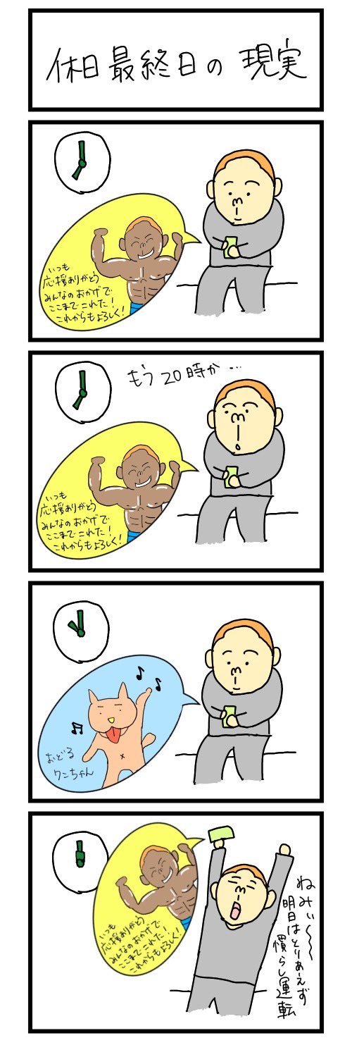 明日から仕事なので、パフォーマンスを上げるため夜ご飯は炭水化物を抜き、軽い運動と半身浴をした後お気に入りの洋楽を聴いて、早めの就寝です!(理想) #ナイトルーティーン #ゴリラ #4コマ漫画 #漫画が読めるハッシュタグ #理想と現実 現実はこちら↓
