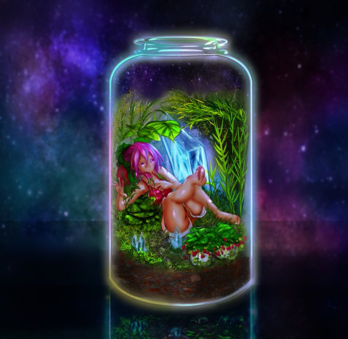 #イラスト #絵 #illust #私の絵柄が好みって人にフォローされたい #落書き #500枚チャレンジ #うちの子 87枚目「#瓶」のアップ加工版。前のは縮小でかなり潰れてたので、せっかくなのでもう少し細かいところまで見えるようにしてみました😆 クリスタルキレイ😍 オリキャラのいちごちゃんです^^