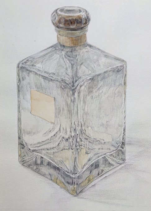 こんにちは✨WANOEです☆ 瓶 (水彩画) F 2号 スケッチブック 画用紙・鉛筆・不透明水彩 2012 洋酒は苦手なんですが めちゃ高いブランデーを飲ませてもらった時に 本物は旨いのね〜〜となりました✨ #絵描きさんと繋がりたい #瓶 #水彩画 #イラスト #お酒 #artwork #アート好きな人と繋がりたい