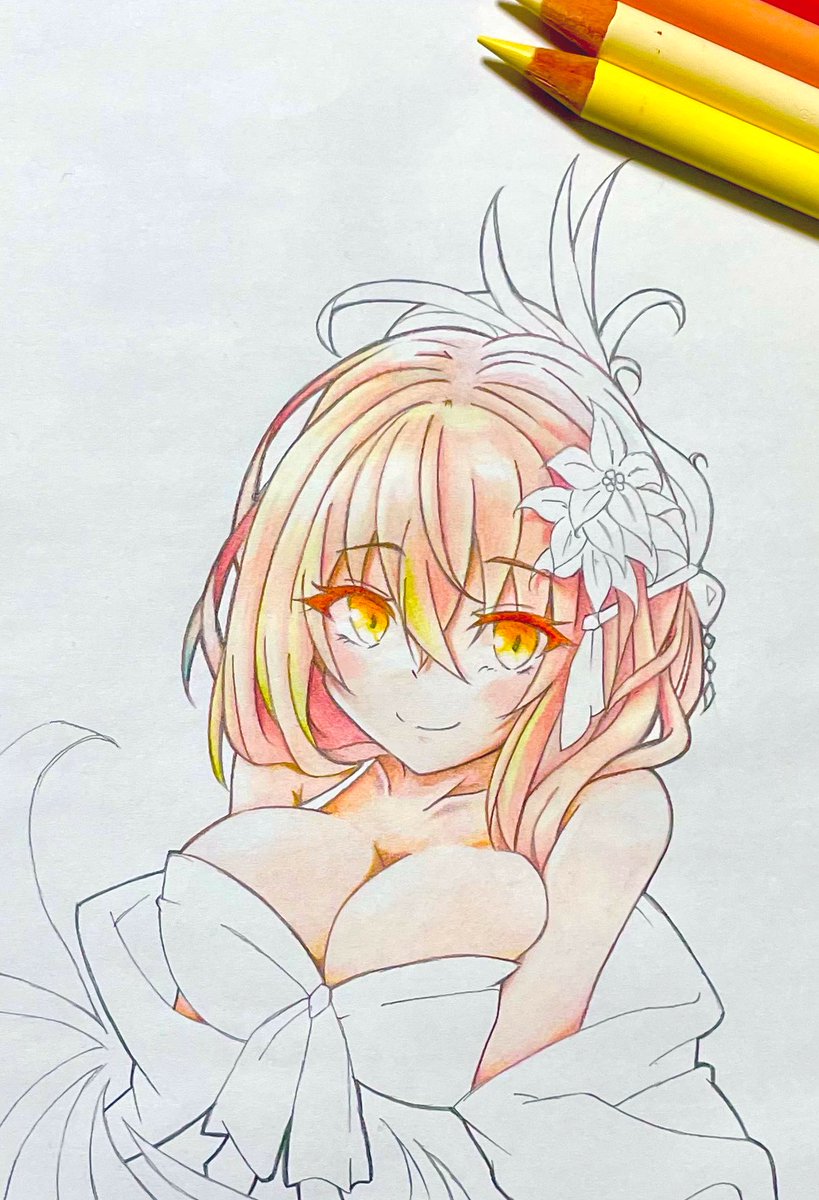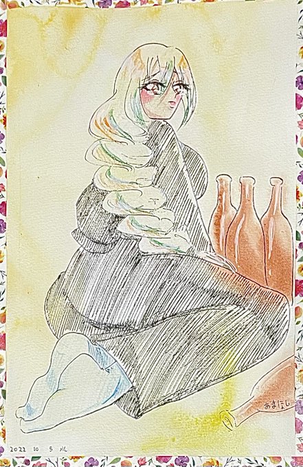 こんばんわ〜🌙 最近、お仕事優先で更新できてなかったですけど前回の続きです✋🏻💦 やっぱり瓶ちゃんかわいいですね☺️ 塗ってて笑顔になります✏️✨ #色鉛筆 #イラスト #イラスト好きな人と繋がりたい #天華百剣 #瓶割刀 #可愛いと思ったらRT