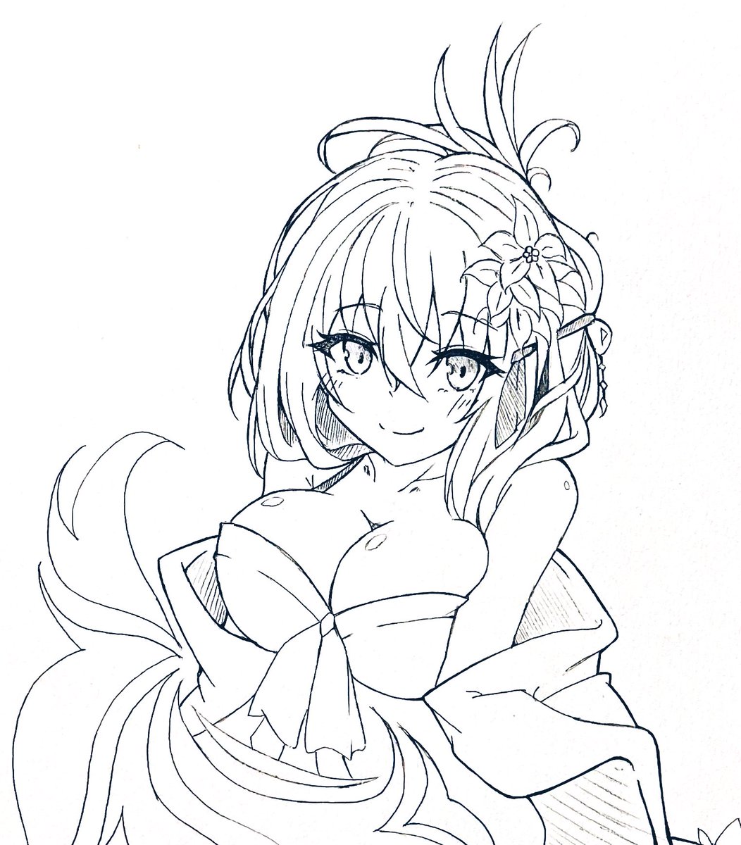 こんばんわ〜🌙✨ 何年か前の私が、おそらく何かを見ながら描いたと思われるイラストが出てきたのでリメイクして描き直してみました✏️ 『天華百剣』の瓶割刀ちゃんです✋🏻☺️ #天華百剣 #天華百剣ありがとう #瓶割刀 #アナログ絵 #イラスト #可愛いと思ったらRT