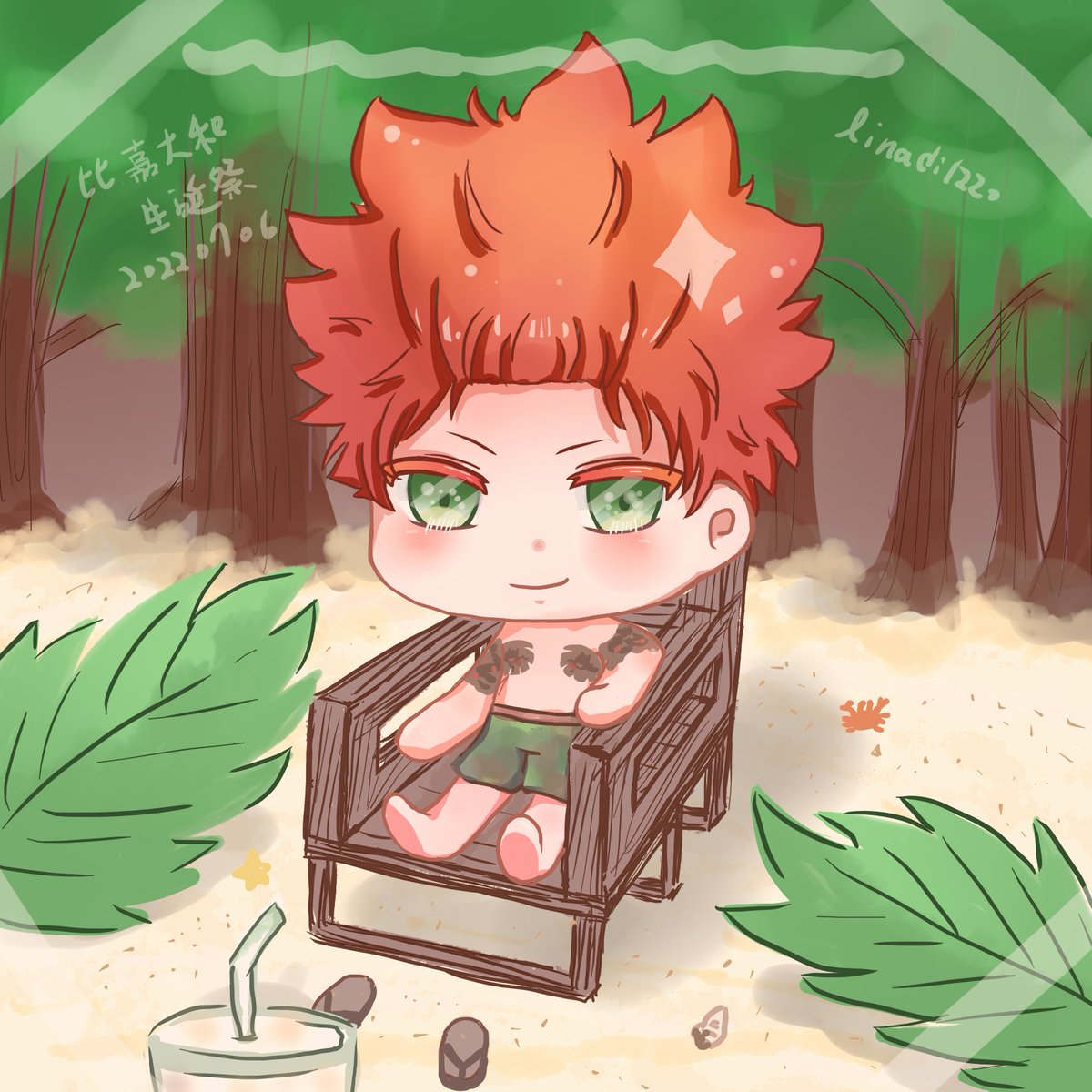 🌞🌊🌿🧡🥤 比嘉さんお誕生日おめでとうございます^^ 今回緑色のお目を描いてみました(笑) #甘い懲罰 #比嘉大和 #比嘉大和生誕祭2022 #比嘉大和誕生祭2022 twitter.com/twRINA_0111/st…