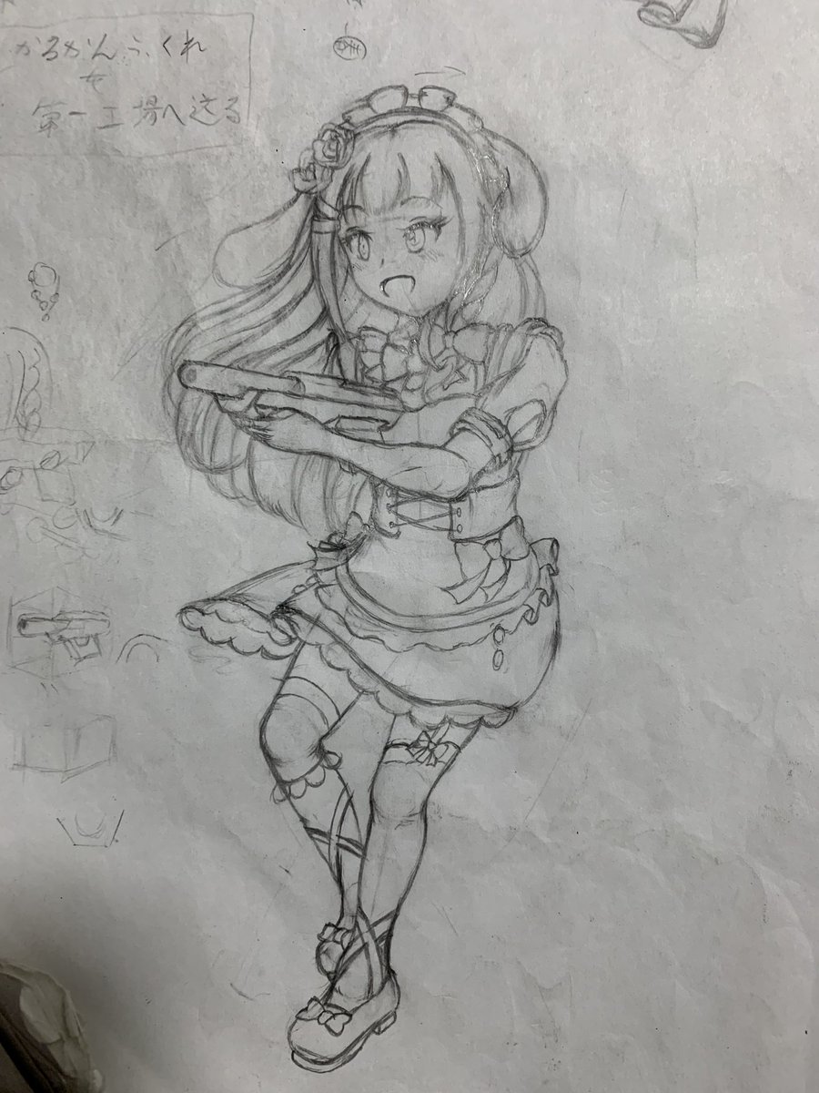 #甘兎れいむ のラフ完成!楽しく銃を構えて戦う姿を描いてみました。ここからは『デジタルで色塗り』を始めます! #絵描きさんとつながりたい #絵描きさんと繫がりたい #イラスト #イラスト好きさんとつながりたい #ArtistOnTwitter #art #illustration #Vtuber #れいラテアート