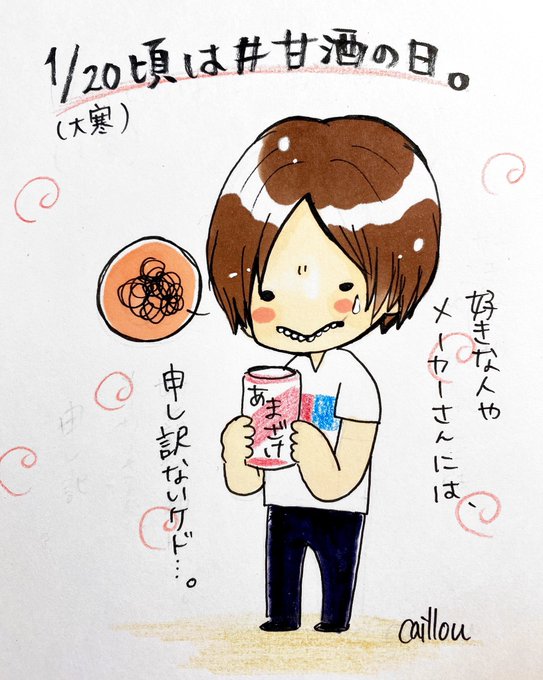 今日はなんの日 甘酒の日♡ 森永製菓株式会社が制定。 日付は、甘酒は疲れを癒し、身体が温まる飲み物として「大寒」の頃が最も飲まれていることから大寒の日(1月20日頃)とした。 #甘酒の日 #絵描きさんと繋がりたい #冬の創作クラスタフォロー祭り