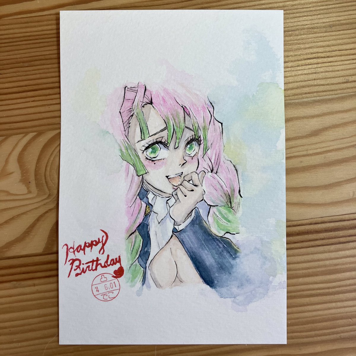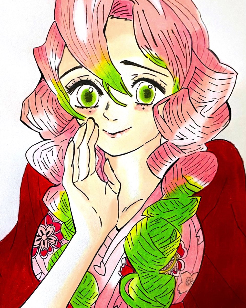#鬼滅の刃 #鬼滅の刃イラスト #甘露寺蜜璃 #甘露寺蜜璃誕生祭2022 #甘露寺蜜璃生誕祭2022 #甘露寺蜜璃イラスト 蜜璃ちゃんおめでとう㊗️ わたしが描いた蜜璃ちゃんはあざとい顔している(笑) 天然ちゃんなとこも最高に可愛い🍡 #凸がき #スケッチブック #模写修行 #水彩画イラスト