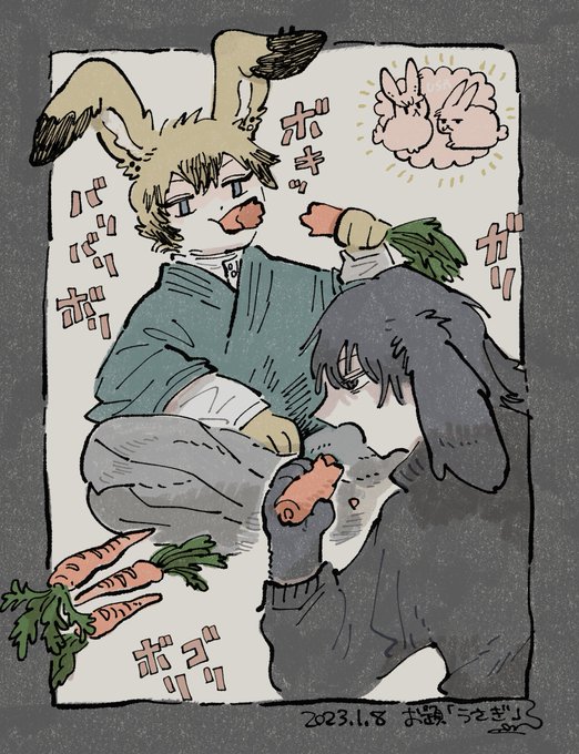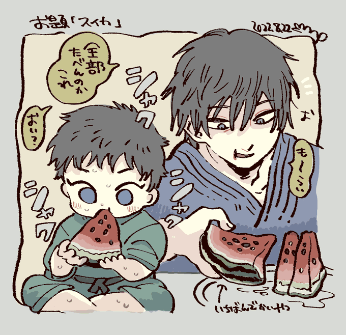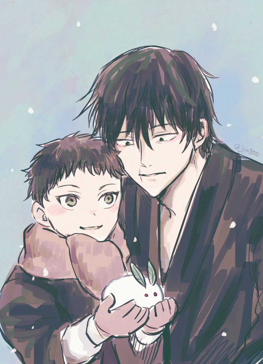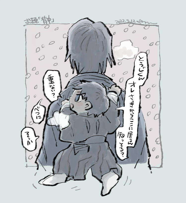 #甚直ワンドロ・ワンライ お題が「自由」という事なので、チビ直ととーじ君で!!(ちょっと前に没にしようとしてた線画を再利用…🫣) なかなかワンドロ参加できなかったですが、いろんな方の作品見れて楽しかったです!ありがとうございます😭 『ずっと大好き』