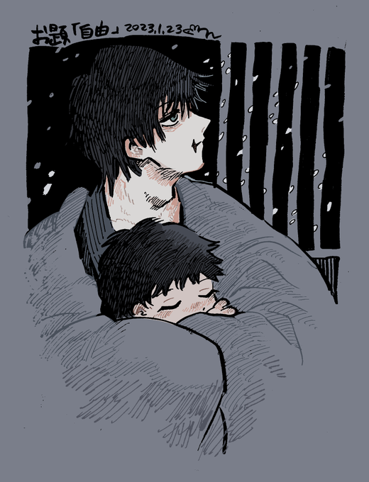 #甚直ワンドロ・ワンライ お題 『自由』+5時間位 自由に描いていいという解釈で描きました。 最後は出会いの場面で。 ここが全ての始まりで直哉の全てを決めた果ての場所。 管理人様、1年ちょっとお世話になりました。 たくさんの甚爾と直哉に会える場を設けていただいたことを感謝しております