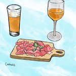 早く気軽に飲みに行けるようにならないかな〜 #生ハム #ワイン #ビール #料理 #飲み #イラスト #絵描きさんと繋がりたい #イラスト好きな人と繋がりたい #お絵描き好きな人と繋がりたい #お絵描き #創作イラスト #デジタルイラスト
