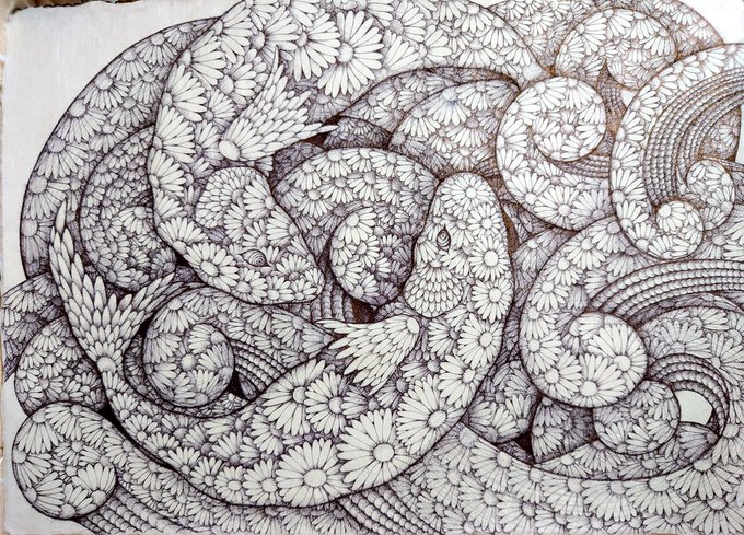 色とりどりの 彩りに溢れた世界 生命の息づかい 頭の中をからっぽにして ただ筆をとる 走らせる 納得のいくまで #Artist #itsmylife #nature #pendrawing #wildlife #アナログ画 #ペン画 #アートのある暮らし #イラスト #想い #暮らしの中に彩りを #生命力 #私の世界 #絵描きさんと繫がりたい