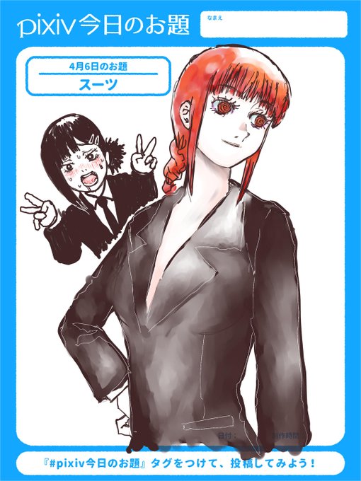 #Sketchドロー #スーツ #pixiv今日のお題 #生存報告 #チェーンソーマン #マキマ #コベニ ライブで描きました コベニてんぱり可愛いよ sketch.pixiv.net/items/98122306…
