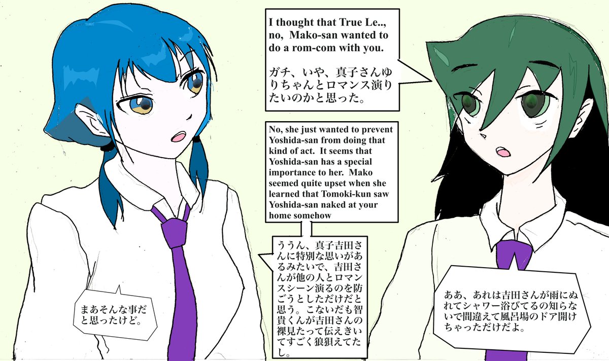 喪214(前編)の。 スーパー銭湯で吉田さんとお風呂に入るというまこっちへの連絡がNTRのビデオレターみたいになるゆりちゃ。 pixiv.net/artworks/11031… #私がモテないのはどう考えてもお前らが悪い! #わたモテ #田村ゆり #田中真子 #吉田茉咲