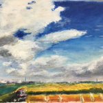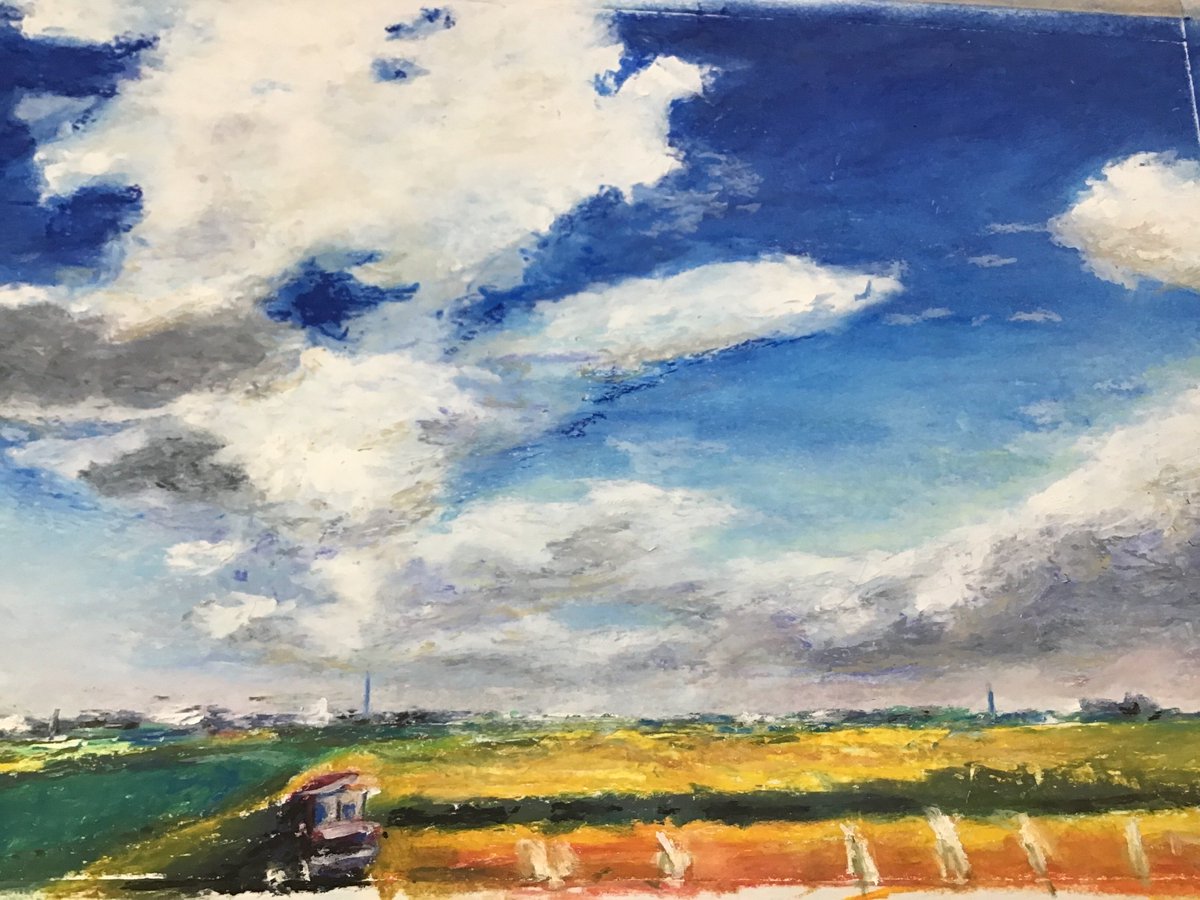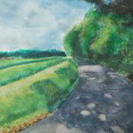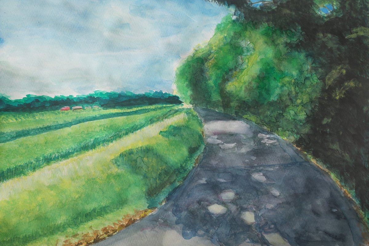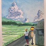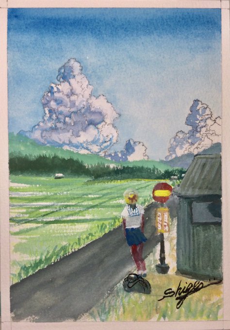〜部活帰り〜 今日はアクリルガッシュの絵の具を使って、部活帰りの女学生を描いてみました。もう少しでバスが。夏のお昼前のひと時。 #アクリルガッシュ画 #風景画 #夏のお昼前 #女学生 #部活帰り #バス停 #田園 #入道雲 #絵を描いている人と繋がりたい #絵が好きな人と繋がりたい