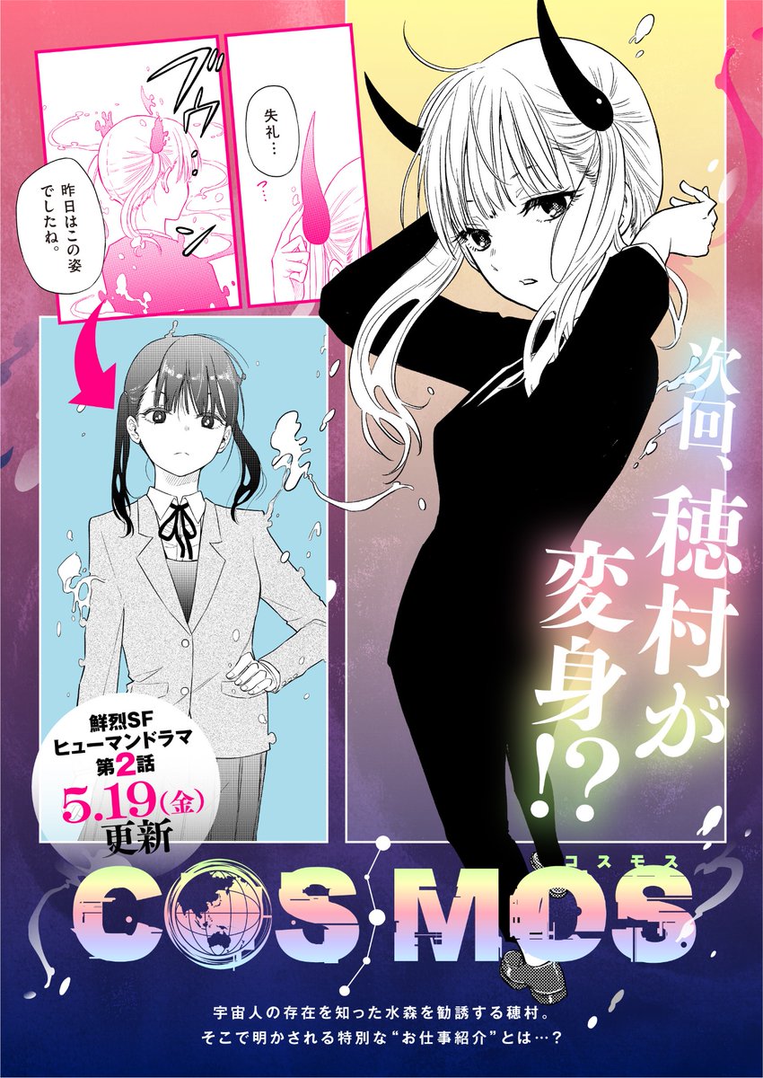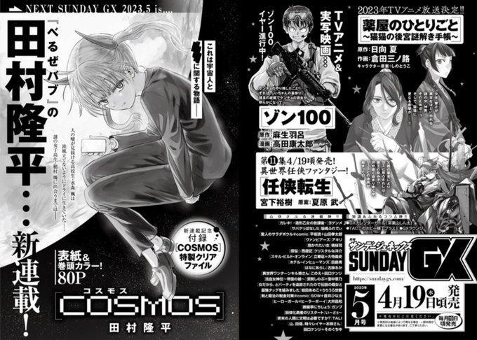 『COSMOS』(コスモス)、始まりました!! 楽しんでいただければ幸いです。よろしくお願いします!(田村) 第1話「未知との遭遇」、「サンデーうぇぶり」でも公開です。 どうぞ、お楽しみください!(担当) ●第1話はコチラ ↓ sunday-webry.com/episode/485600… #田村隆平 #新連載コスモス