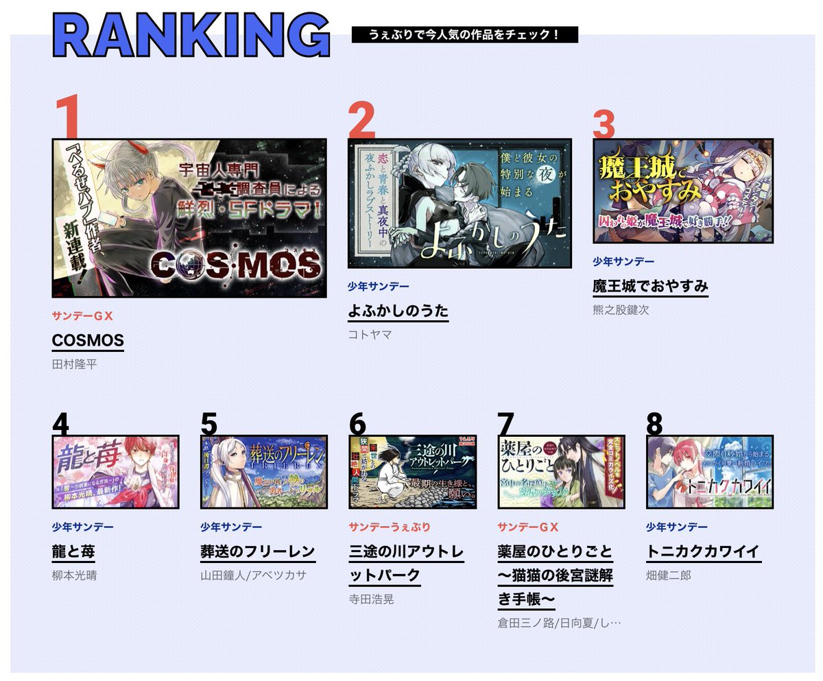 【🪐第4話更新🪐】 COSMOS、4話「リビング・ニーズ」載ってます。 水森と2人のセンパイの話です。 よろしくお願いします…!(田村) GXでは4話まるごと、うぇぶりは4話「前編」の更新です!!(担当) ↓ sunday-webry.com/episode/485600… #田村隆平 #コスモスの日