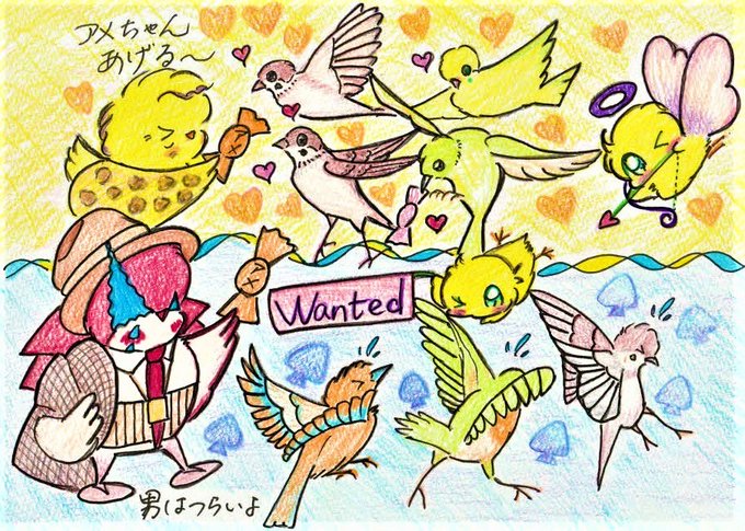 #男はつらいよ #絵描きさんと繫がりたい #小鳥 「男はつらいよ」第一作が公開された日 女性(おばちゃん)が飴をあげると😍男性が飴をあげようとすると???😖 「レディースセット」「レディースディ」はあるけど「ジェントルマンセット」「ジェントルマンディ」は見たことない 男はつらいよ⁉
