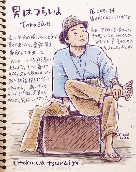 どうせ俺らはおばかなぶたちゃん〜🎵 男はつらいよシリーズ大好きです🐽💖 つらいこともあるけど、笑っていきましょうね🐯🧳 #イラスト #イラスト好きさんとつながりたい #絵描きさんと繋がりたい #男はつらいよ #ばかぶたちゃん