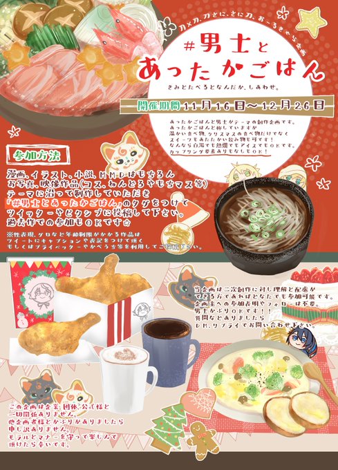 きみとたべるとなんだか、しあわせ。 #男士とあったかごはん 自分の尻叩き&冬のお題で久々に企画をします。 冬の食卓、主と過ごす食事、男士達が楽しむ夜食 冬の創作のお題として一緒に楽しんで頂けたら幸いです。