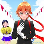 今日の夏コミで頒布される #男装プリキュア アンソロに表紙と絵を一枚寄稿させていただいてます✨ 男装の麗人ガールズを是非ぜひご覧あれ☺️✨ shinpon.booth.pm/items/4996667